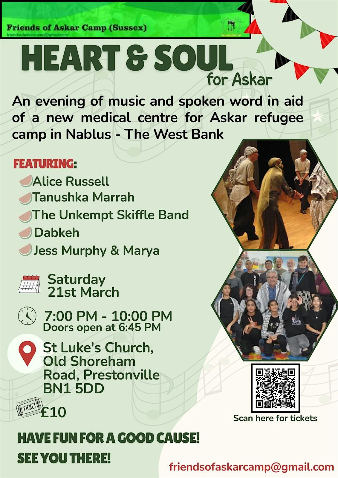 An evening of music and spoken word in aid of a new medical centre for Askar Refugee Camp in Nablus, Palestine West Bank.About this Event