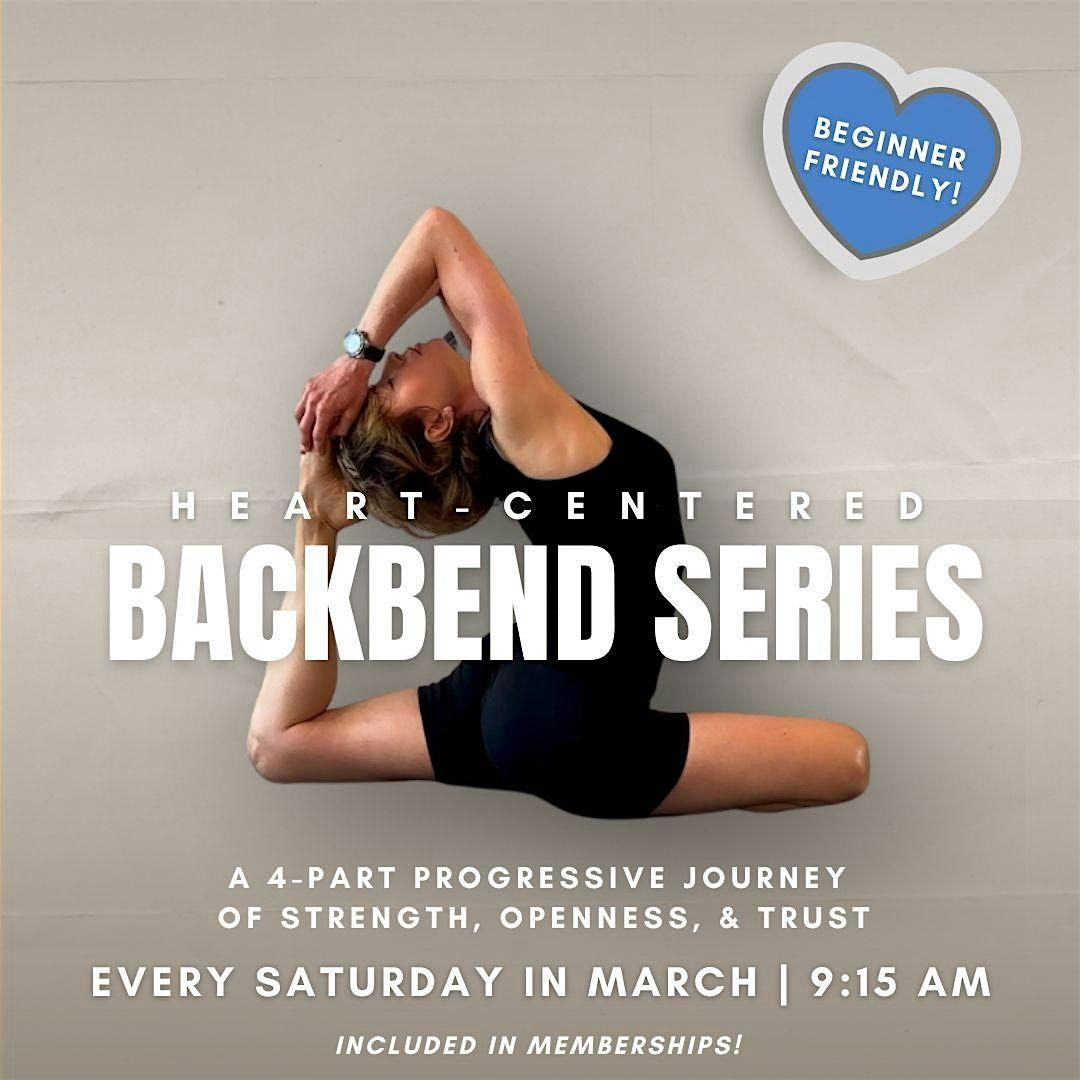 The Open Heart Backbend Series is a 4-week progressive journey designed to help you safely build strength, mobility, and confidence in backbending postures. Meeting each Saturday in March, this series breaks down backbends with thoughtful sequencing, clear guidance, and supportive options for all levels.