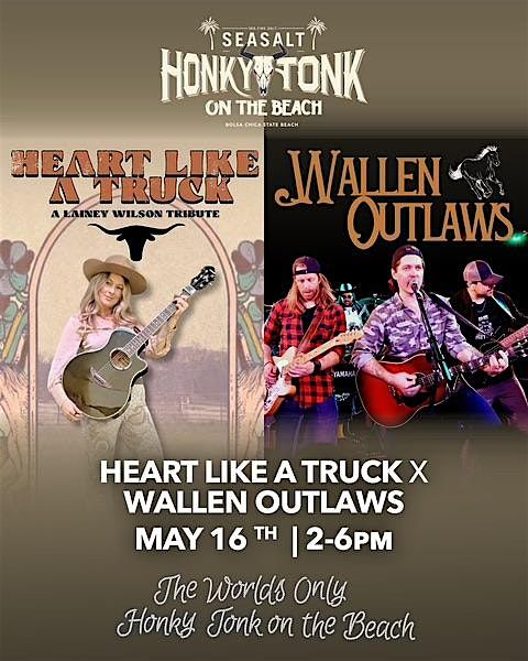 Heart like a Truck X Wallen Outlaws May 16th at 2pm at Honky Tonk. All ages welcome. VIP reservations email [email protected]