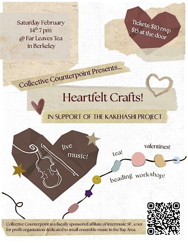 Come spend Valentine's day creating memories, enjoying music, and being with people who care. Proceed from the event will go to support the creation of more music under the auspices of Collective Counterpoint on behalf of the Kakehashi Project.