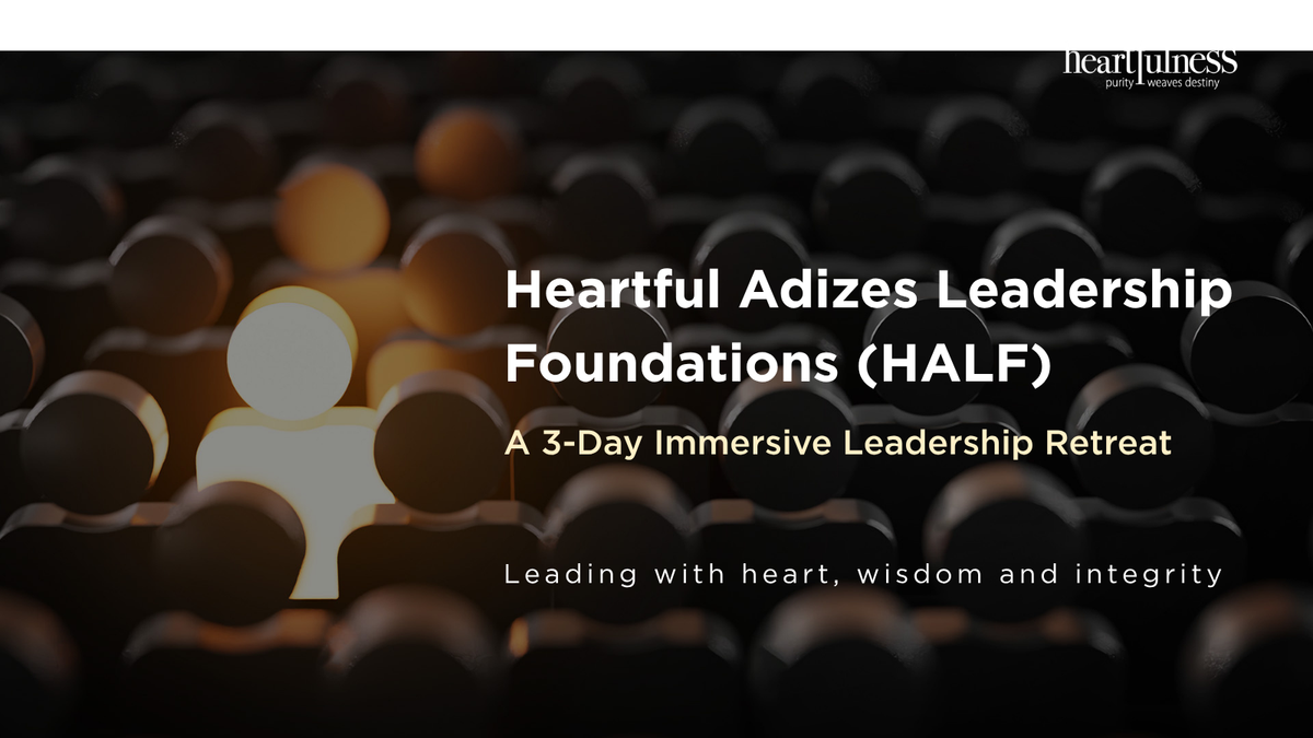 A premium 3-day leadership retreat combining Adizes management methodology with Heartfulness meditation to build clarity, resilience, and high-performance teams.The Heartful Adizes Leadership Foundations Program is a premium 3-day immersive retreat designed to develop future-ready leaders by integrating deep inner transformation with proven organizational strategy.This unique program combines the globally recognized Adizes Management Methodology with Heartfulness practices, enabling leaders to navigate complexity with clarity, resilience, and compassion.🌿 Program JourneyDay 1 – The Inner LeaderDevelop mental clarity and emotional resilience through guided Heartfulness Relaxation and Meditation, alongside foundational Adizes principles such as PAEI roles.Day 2 – Organizational MasteryLearn practical tools for managing change, resolving conflict constructively, and strengthening team dynamics using frameworks like CAPI and Perception of Reality (PoR), supported by Heartfulness Inner Cleaning.Day 3 – Integration & ImpactBuild a high-performance culture rooted in Mutual Trust & Respect, align personal values with business goals, and establish sustainable leadership practices.🌿 Who Should AttendBusiness leaders & decision-makersSenior professionals & managersEntrepreneurs & founders🌿 What’s IncludedCourse materialsBreakfast, Lunch & Tea