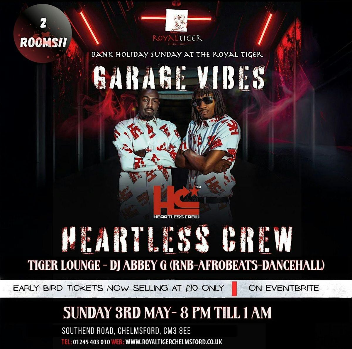 Get ready for a night full of garage beats and good vibes at the Royal Tiger Essex! Join us on May 3, 2026 at 8:00 PM (BST) for an unforgettable Bank Holiday Sunday session. Bring your crew, dance all night, and soak up the best tunes from the legendary Heartless Crew. It’s gonna be a proper vibe, so don’t miss out!