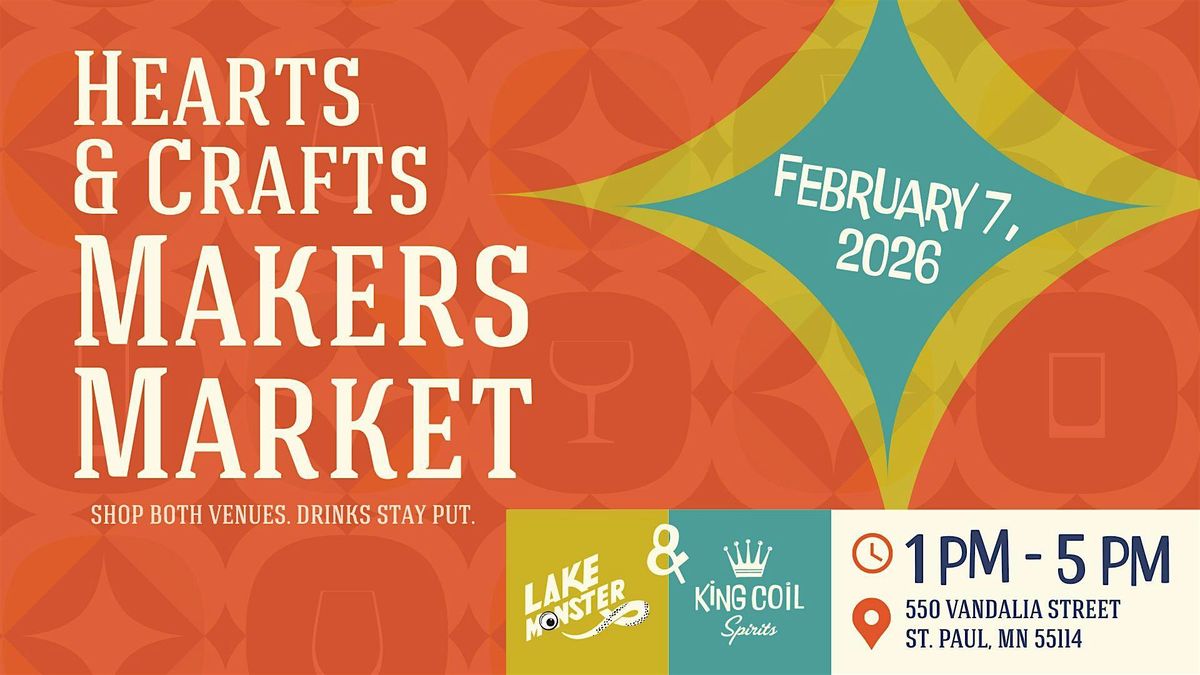 Welcome to the Hearts & Crafts Market happening at King Coil Spirits on February 7, 2026 at 1:00 PM! Join us for a day filled with creativity and fun as local artisans showcase their handmade crafts and unique creations. Explore a variety of items including jewelry, home decor, art pieces, and more. Don't miss this opportunity to support small businesses and find one-of-a-kind treasures. See you there!