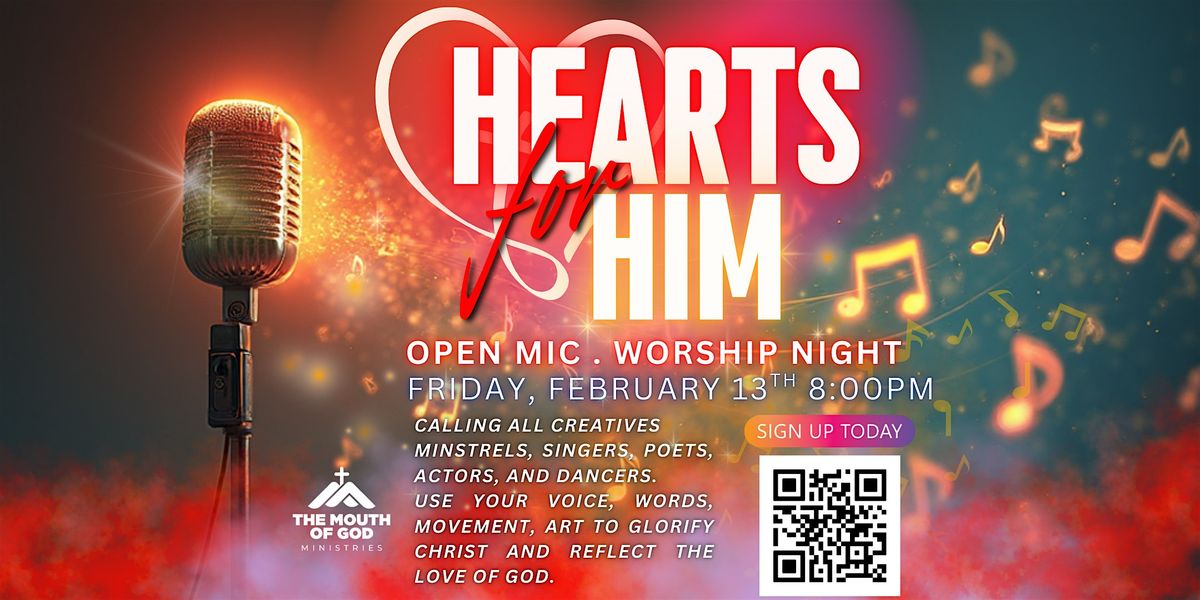 Welcome to Hearts for Him – Open Mic Night at The Mouth of God Ministries!