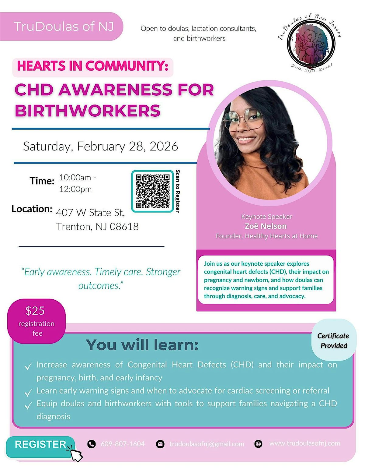 CHD Awareness for Birthworkers explores what congenital heart defects are, how they impact pregnancy, birth, and early infancy, and the critical role birthworkers play in recognizing warning signs, supporting families through diagnosis, and advocating for timely, life-saving care.