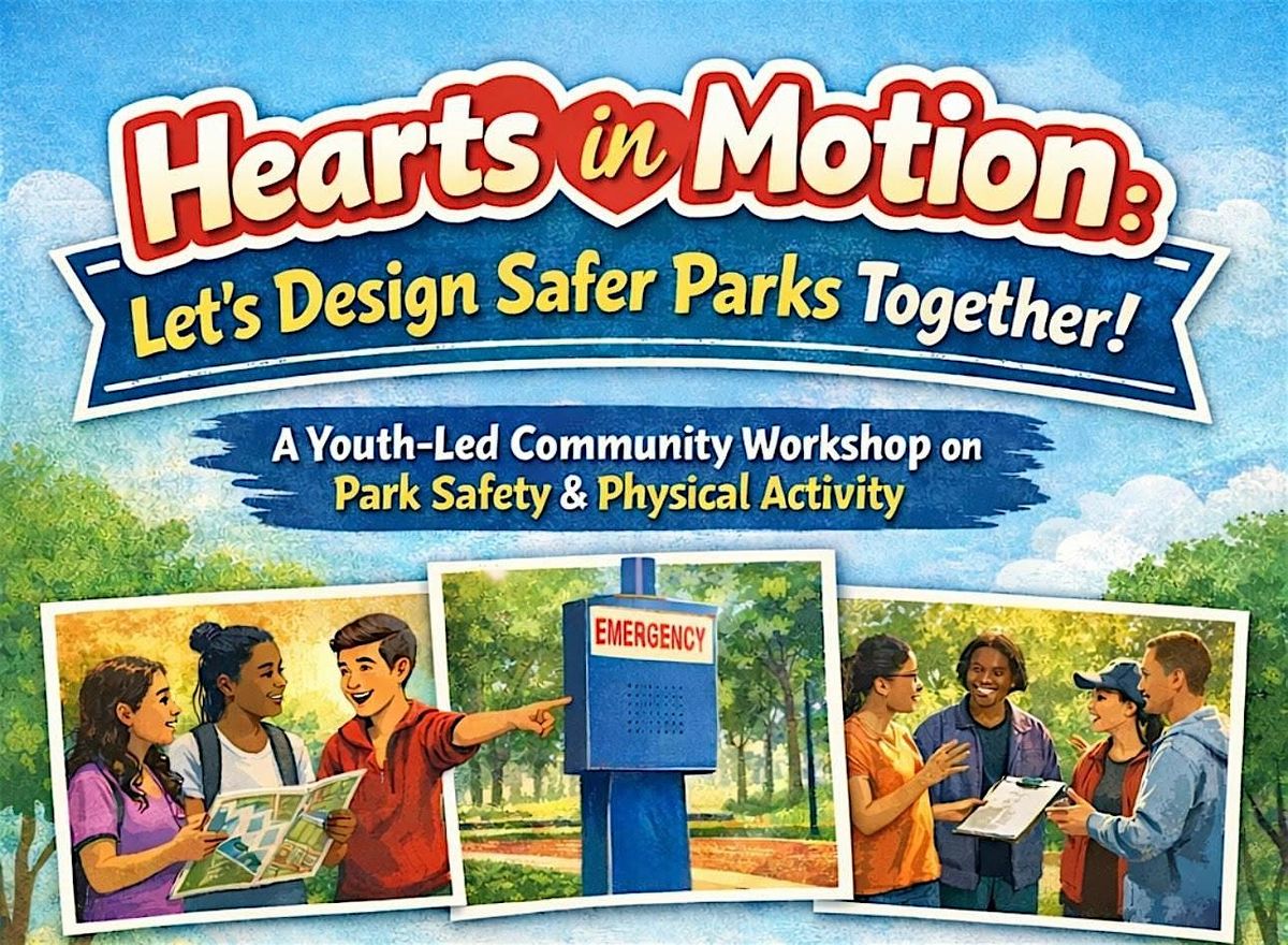 Hearts in Motion is a youth-led community workshop that brings youth and community members together to explore the connection between park safety and physical activity, with a focus on emergency communication access. Participants will take part in interactive discussions and activities that highlight what helps parks feel safer, more welcoming, and more supportive of movement.