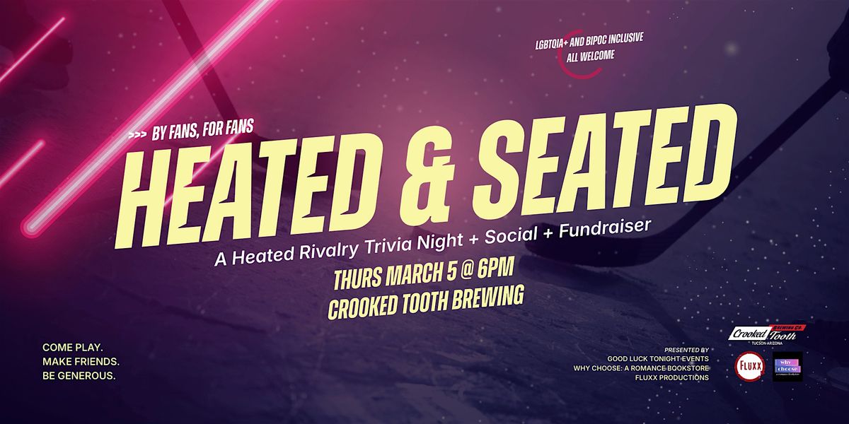 Wolf Birds, this is our time! Come with a team or find one at our pre-trivia Social Hour, and then it's ON! Join your fellow Heated Rivalry fans for eight rounds of written trivia (no buzzers or shouting here!) about the show, the Game Changers series, and maybe a bit of lore. Winners get a special prize and bragging rights across Tucson, and everybody gets something fun!