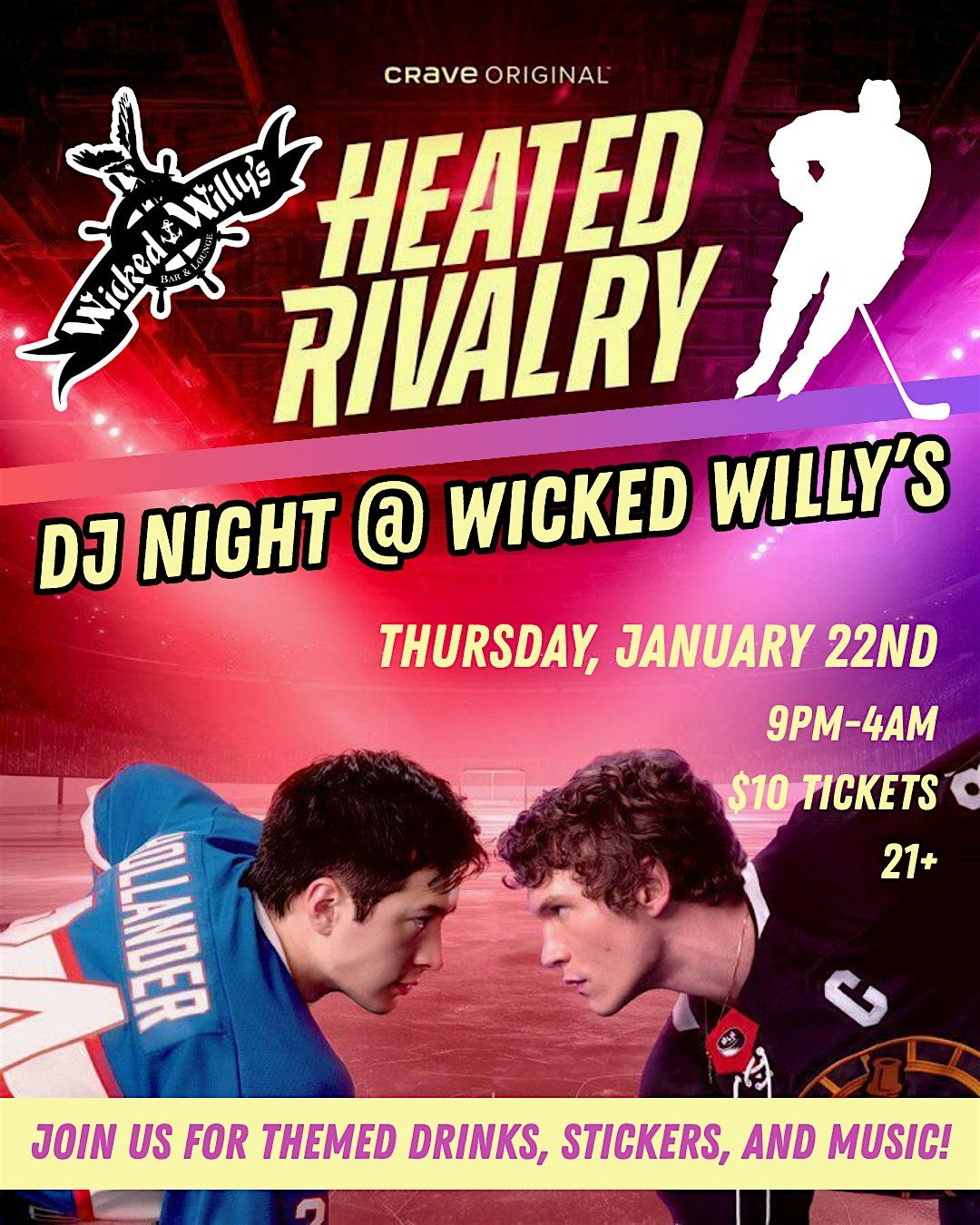 - Beer pong, dance poles, and high-energy vibes you won’t want to miss. A night for the hockey fans... kinda.
