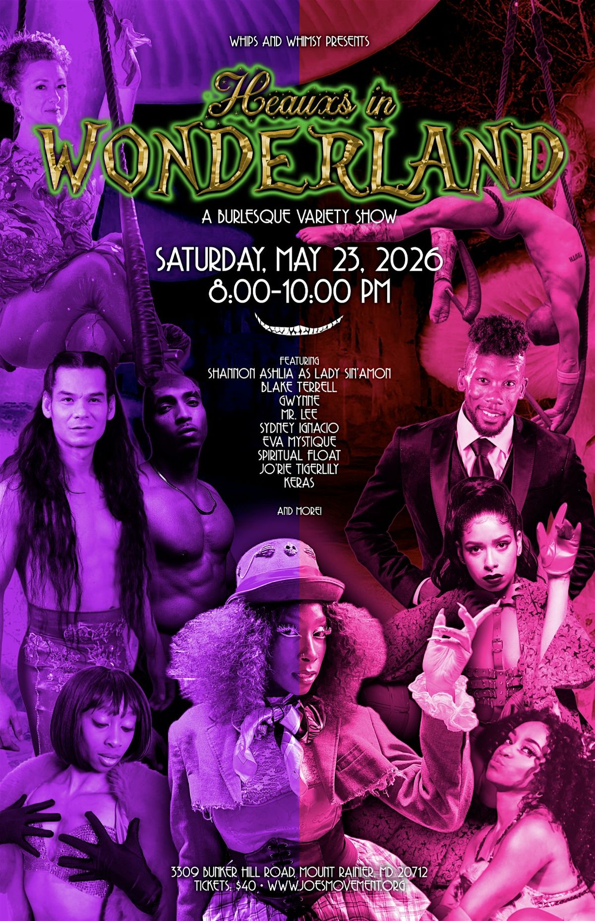 We’re all mad here—and things are about to get delightfully curious! Tumble down the rabbit hole and join us at Joe’s Movement Emporium for a whimsical, wondrous, and wickedly sexy burlesque‑style variety show inspired by the world of Alice in Wonderland. Lose yourself in the fantasy with burlesque dancers, aerial and specialty acts, enchanting elixirs, and more!