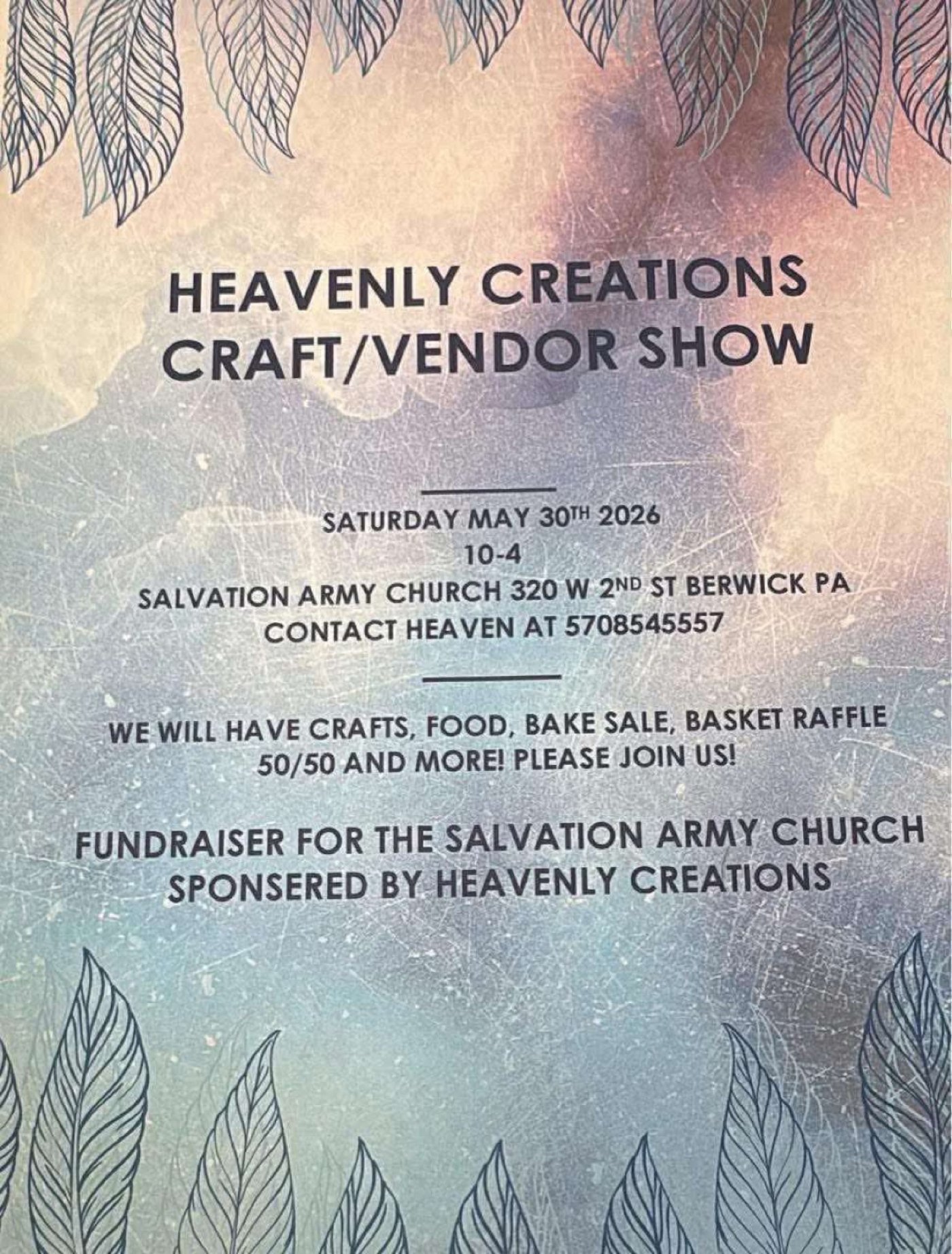 Heavenly Creations is hosting a craft show as a fundraiser for the Salvation Army church.
