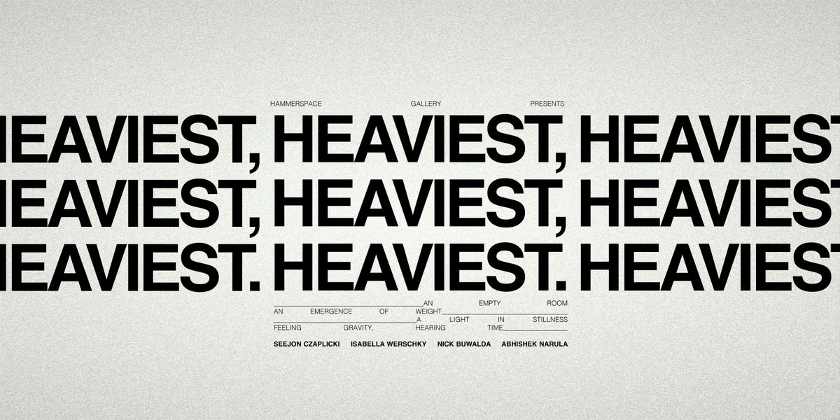 In a once-forgotten industrial space, HEAVIEST, HEAVIEST, HEAVIEST. is a site-specific art exhibition presented by Hammerspace Gallery at Do Not Start, featuring work by filmmaker Seejon Czaplicki, installation artist Isabella Werschky, kinetic sculptor Abhishek Narula, and sound artist Nick Buwalda.