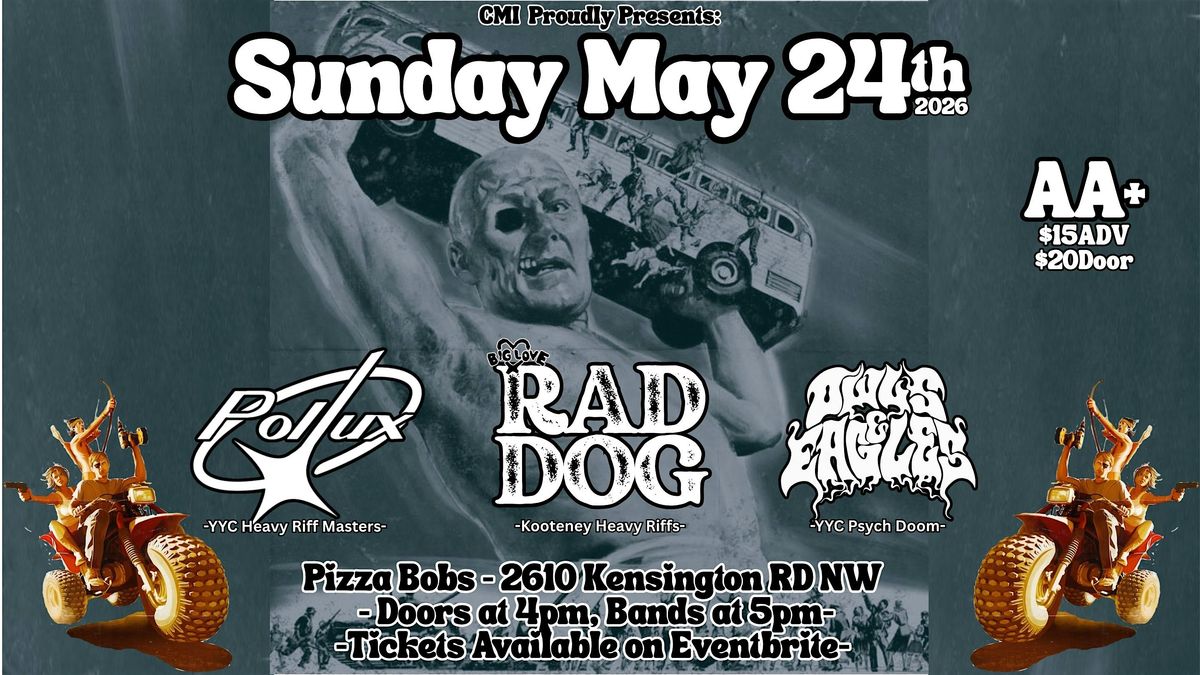 Sunday May 24th, 2026. POLLUX, Rad Dog(BC), Owls & Eagles All Ages +