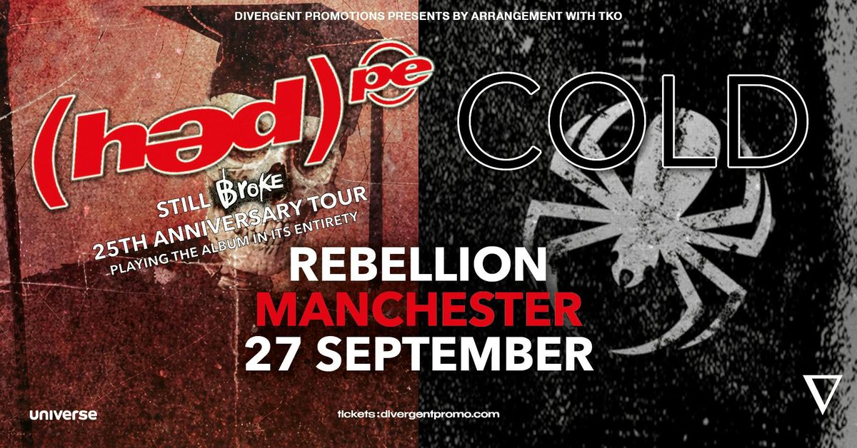 Divergent Promotions are pleased to announce that HED P.E. and COLD will be hitting the UK together in September and October! Legendary Southern California G-punk pioneers (Hed) e. were known for their raw, brutalhonesty, raunchy lyrics, and often outlandish sense of humor. During their rise amid the nu-metal ranks, (Hed) p.e. shows often united fans and were a giant middle finger to the corporate rock that was ruling the airwaves in the late 90s and early 2000s.