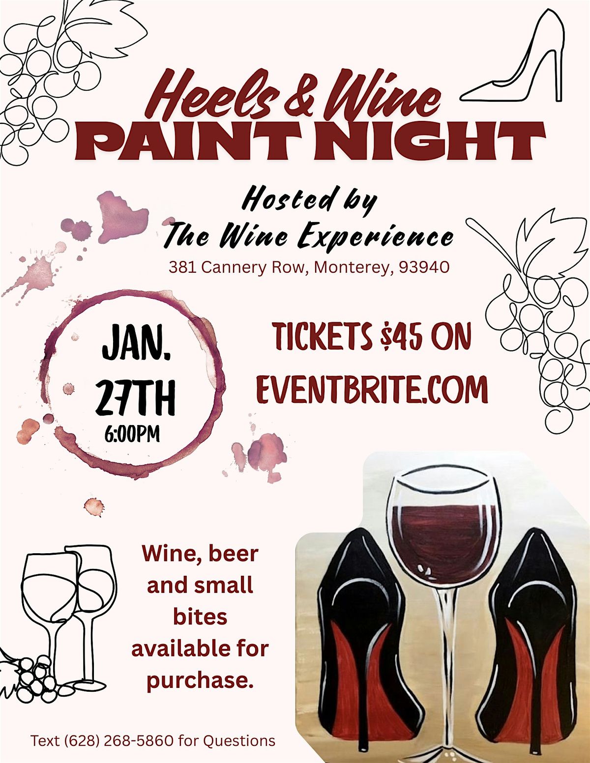 Get ready for a fun in-person night filled with creativity and good vibes! Grab your favorite heels and a glass of wine, and unleash your inner artist. Whether you're a pro or just looking to have a blast, this paint night is all about relaxing, laughing, and making memories. No experience neededโjust bring your enthusiasm and enjoy a colorful evening with great people. Cheers to art, wine, and fabulous shoes!