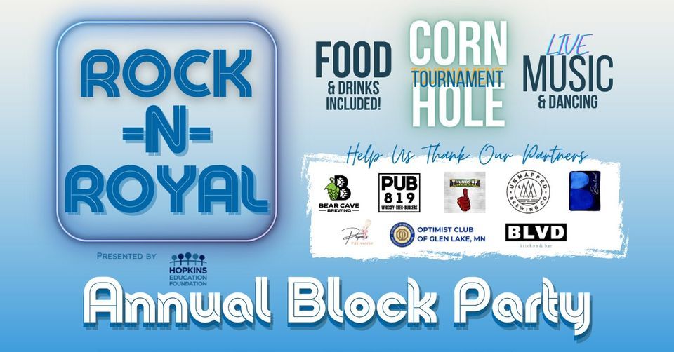 To kick off the new school year, Hopkins Education Foundation is hosting its annual Rock-n-Royal Block Party, an adults-only celebration in downtown Hopkins on September 23rd. This festive evening features live music, food & drinks, a cornhole tournament, and is a fabulous time for Hopkins parents, caregivers, teachers, alumni, administrators and our Hopkins community to come together before the chilly temps roll in.MOVING TO A NEW VENUE at the Downtown Park in Hopkins (where the Farmers Market is located at 40 9th Ave S), we’re partnering with community breweries and restaurants to offer food and beverages that are now included in the price of your ticket!