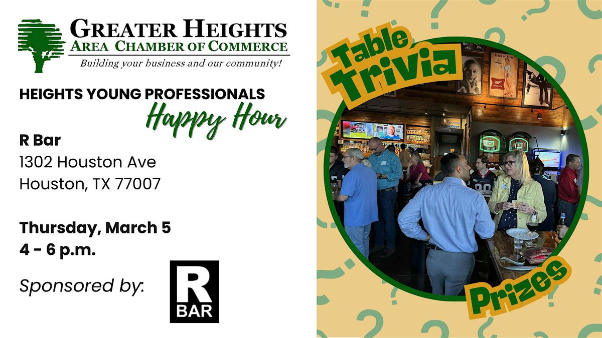 The Heights Young Professionals invites you to Happy Hour at R Bar.