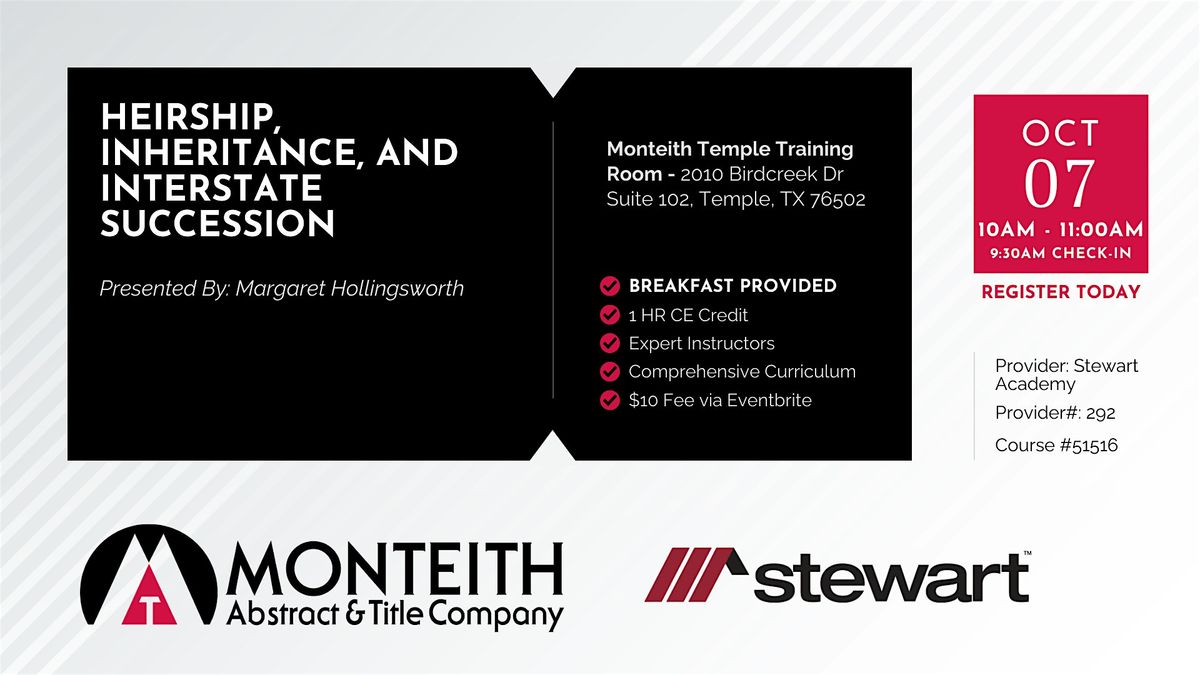 Presented By Margaret Hollingsworth from Stewart TitleAbout this Event