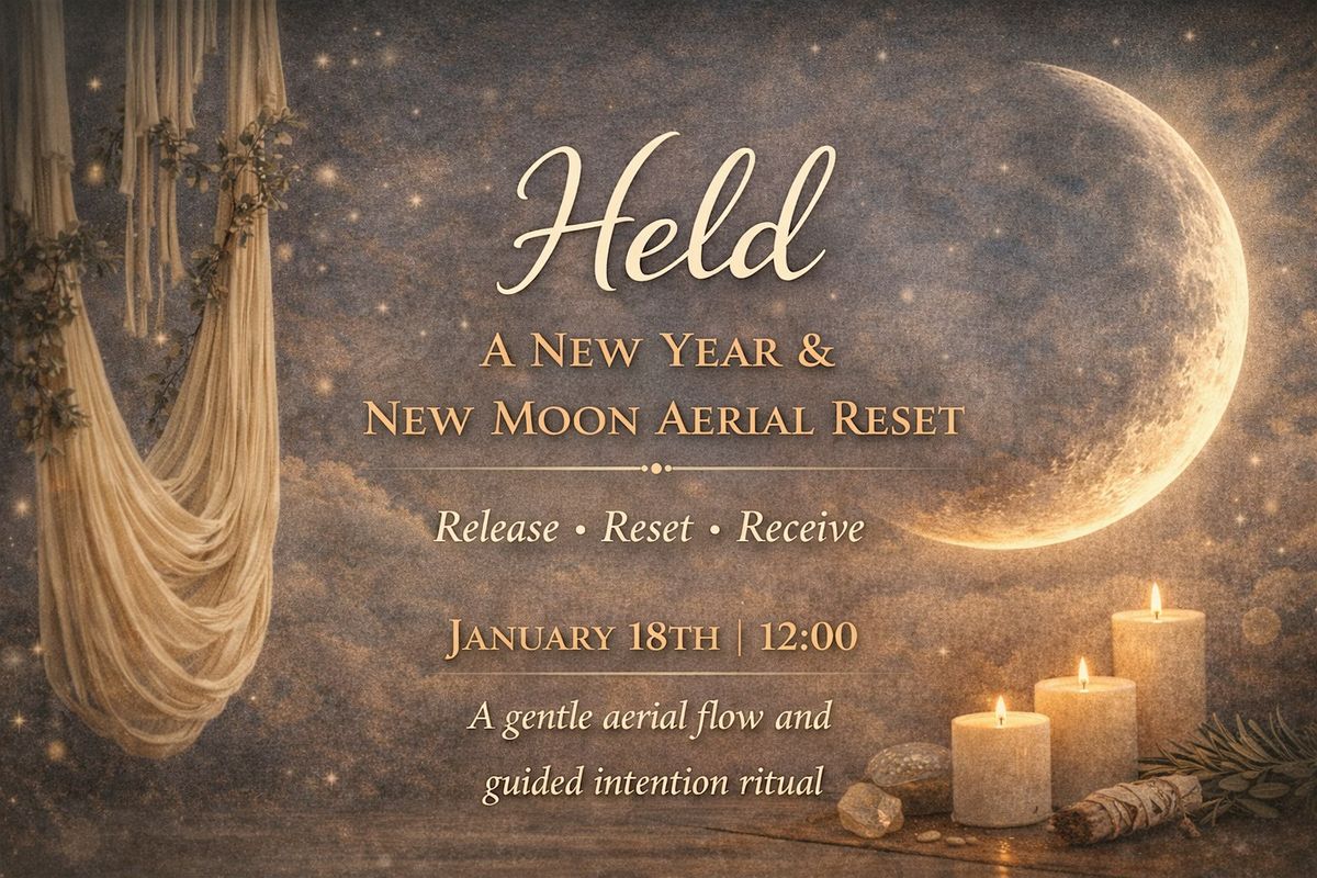 Held is a gentle movement experience designed to help you release what no longer serves you and set embodied intentions for the year ahead. Guided by the energy of the new moon—a time for fresh starts and planting seeds—this workshop blends movement, sound, and reflection to create space for clarity and calm.