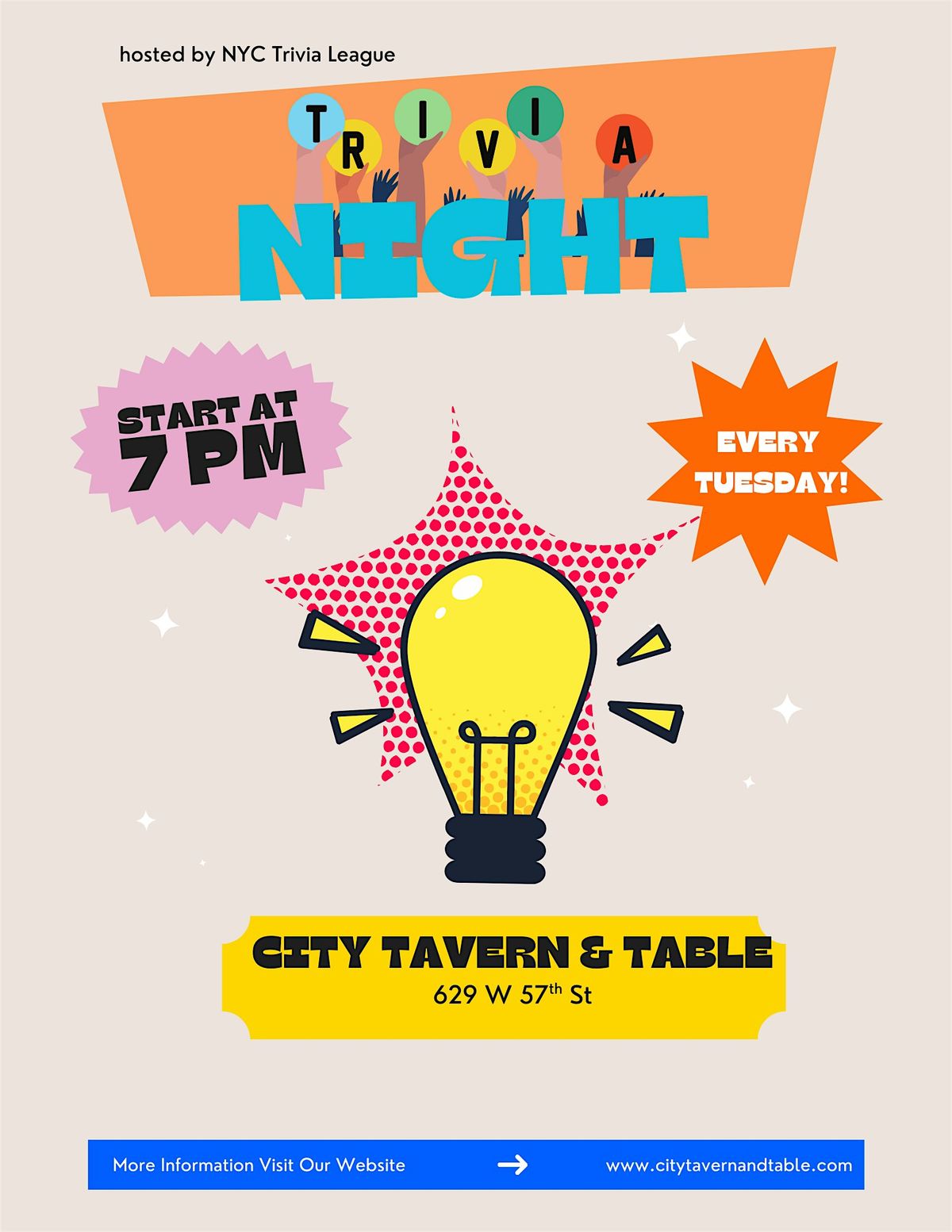 Trivia kicks off at 7:00 PM, and reservations are highly recommended.