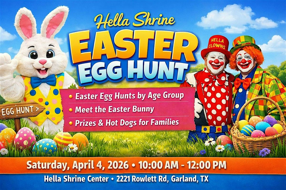 Children will have the opportunity to participate in Easter egg hunts organized by age group, meet the Easter Bunny, and enjoy entertainment from the Hella Shrine Clowns.