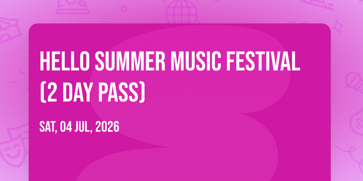 📍 Location: 56.6626, -111.335🎉 Welcome to Hello Summer Music Festival (2 Day Pass), where the impossible becomes possible and dreams take flight! 🏛️ Join us at SMS Stadium in the heart of Fort McMurray, AB for an event that will redefine your expectations. 📅 On July 4th, 2026 at 09:29 PM, witness the transformation of space and time into something truly magical. ✨ It's a curated experience combining the best of innovation, entertainment, and community spirit, creating moments that will be remembered for years to come. Whether you're a first-time visitor or a seasoned enthusiast, prepare to be amazed. 🎊 Book now to ensure your place in this unforgettable experience!