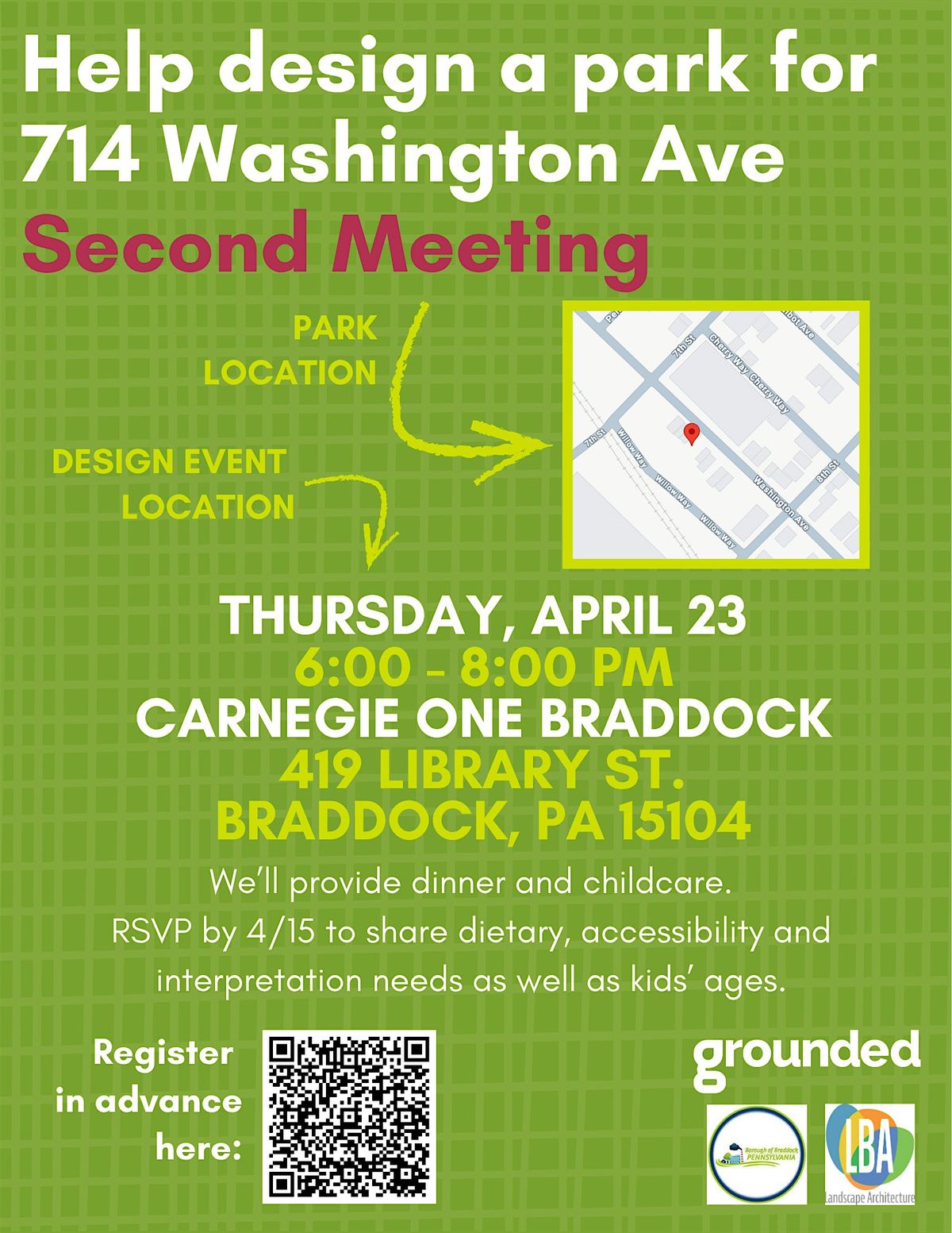 Note: 714 Washington Ave. is owned by Braddock Borough. Grounded Strategies and LBA Landscape Architecture are collaborating with the Borough to re-imagine this site.