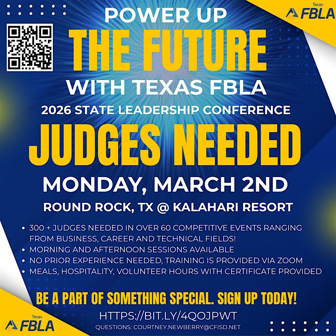 Are you passionate about business, technology, or professional development? Texas FBLA (Future Business Leaders of America) is looking for over 300 industry professionals and community members to serve as volunteer judges for our 2026 State Leadership Conference!