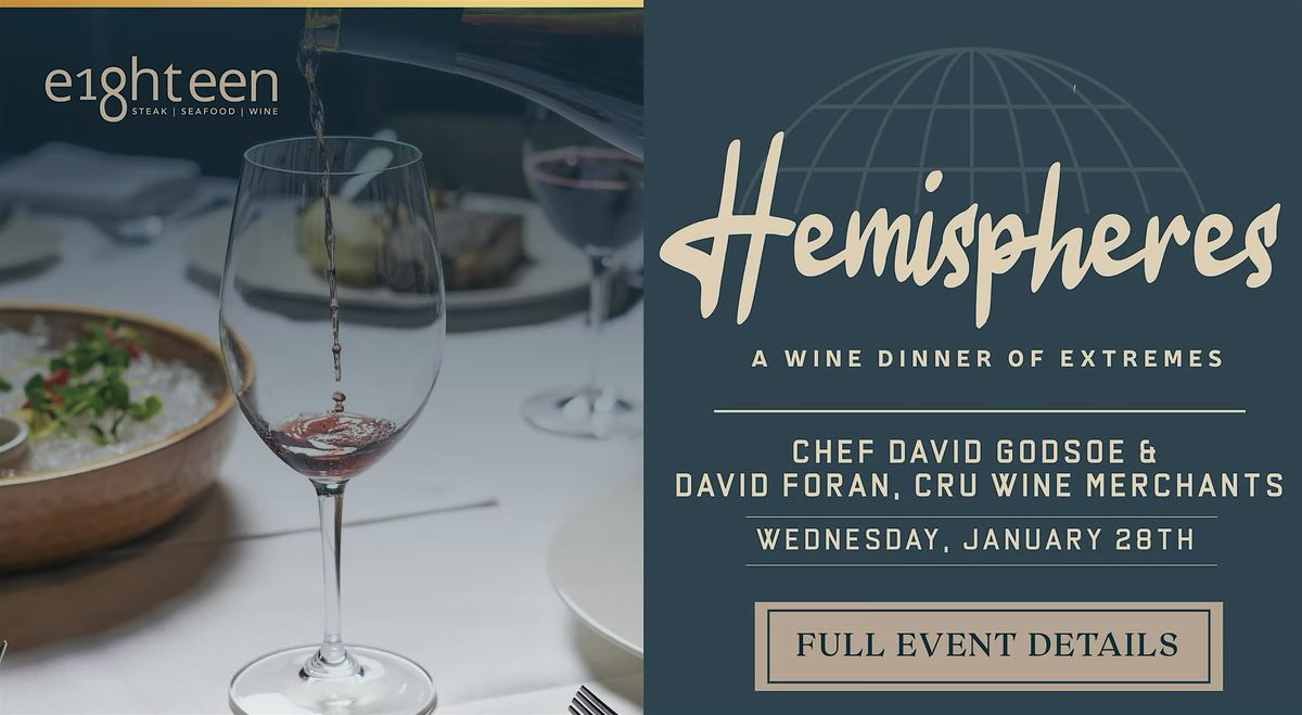 Join us on Wednesday, January 28 for Hemispheres, an intimate four-course collaboration between Chef David Godsoe and David Foran of Cru Wine Merchants. A thoughtful journey through dynamic dishes and global wines from both sides of the equator. The perfect way to treat someone this holiday season.