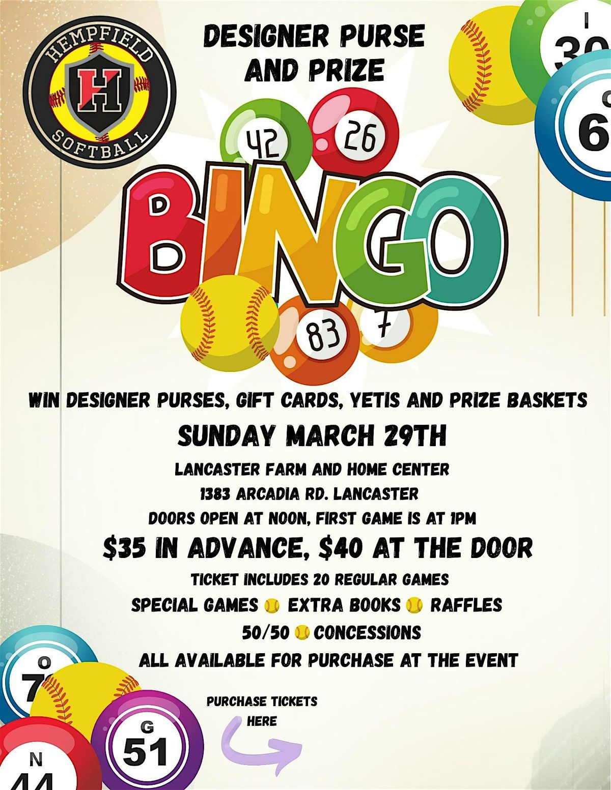 Ticket includes 20 games of bingo! In addition, special games, raffles and 50/50 will be available for purchase the day of! Concessions will also be available. Prizes include designer purses, gift cards, YETI products and Gift baskets! Something for everyone! Grab your friends and family and join us for a day of fun and games!