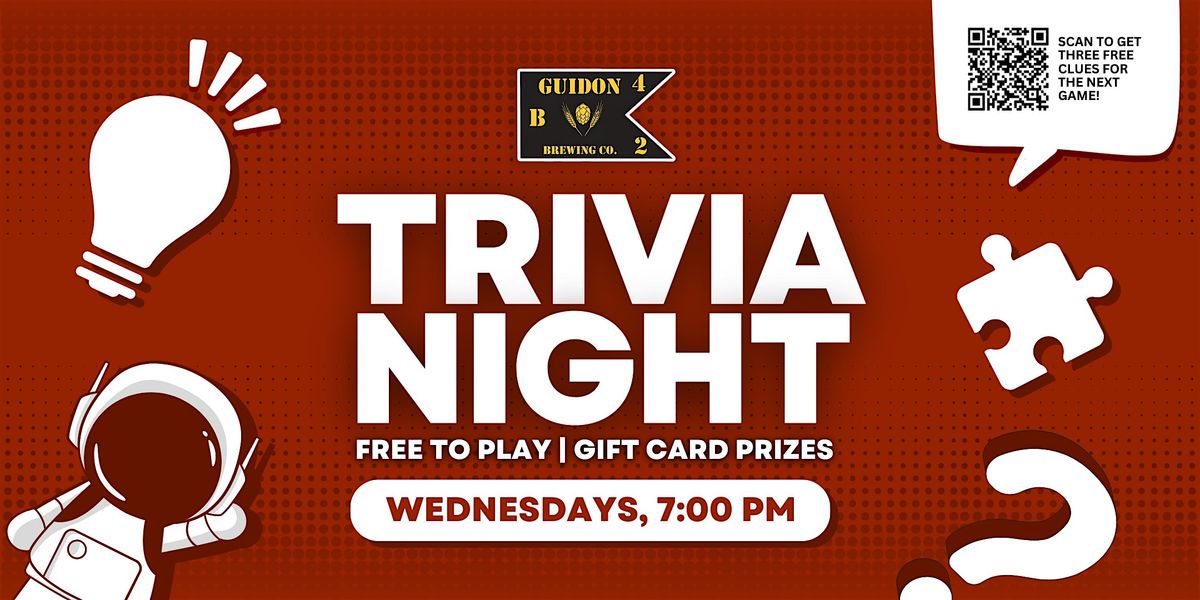 Join us for free live trivia every Wednesday at 7pm at Guidon Brewing Company in Hendersonville, NC! Free to play, and top teams win gift card prizes!