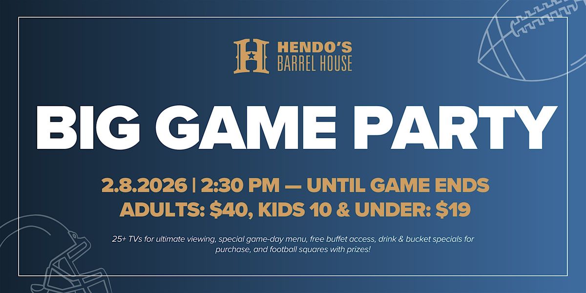 Hendo’s Barrel House is bringing the energy for a ticketed Big Game watch party on Sunday, February 8. The party starts at 2:30pm, with 25+ TVs ensuring there’s not a bad seat in the house, a buzzing game-day crowd, and nonstop action from kickoff to the final whistle, making it the ultimate spot to catch every big play.
