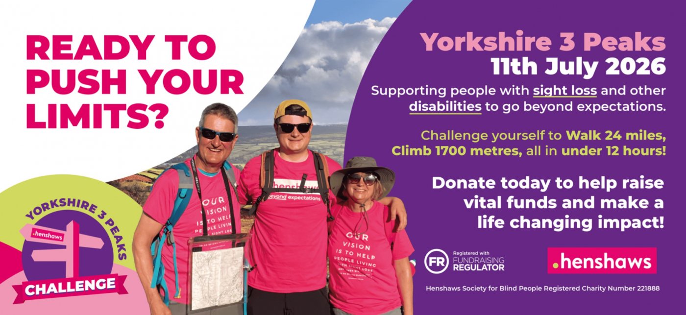 Take on the iconic Yorkshire 3 Peaks in support of Henshaws. This unforgettable challenge covers 24 miles, includes 1,700 metres of ascent, and takes in Pen-y-Ghent, Whernside and Ingleborough – all to be completed within 12 hours.