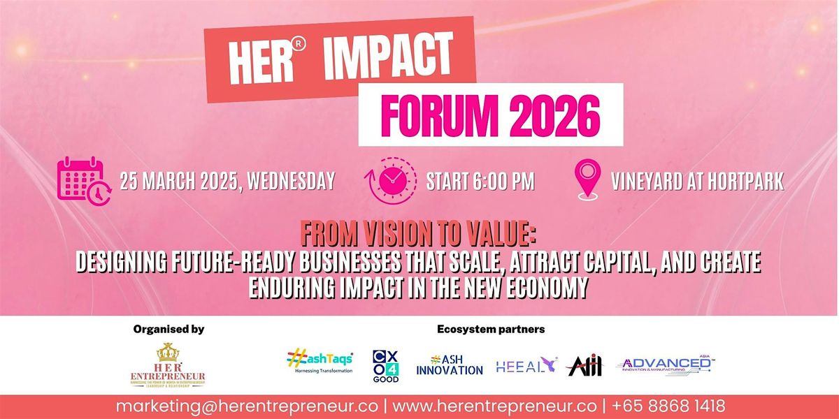 Join us and our esteemed speakers at HER® Impact Forum 2026: Designing Future-Ready Businesses that Scale, Attract Capital, and Create Enduring Impact in the New Economy on Wednesday, 25 March 2026 start 5:00 pm SGT.