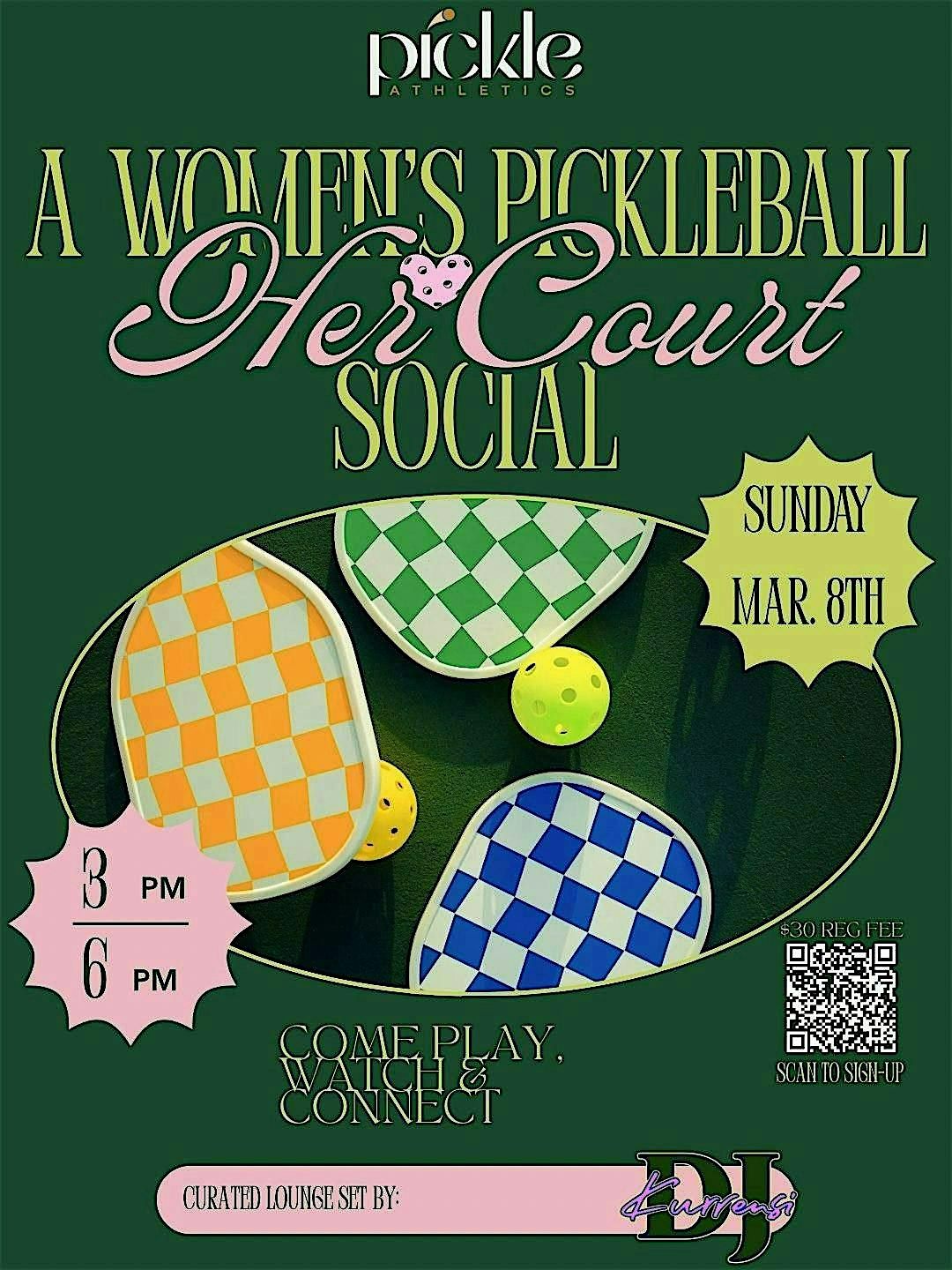 Info: Open court ladder play + women's social connection. All levels welcome. DJ in the lounge