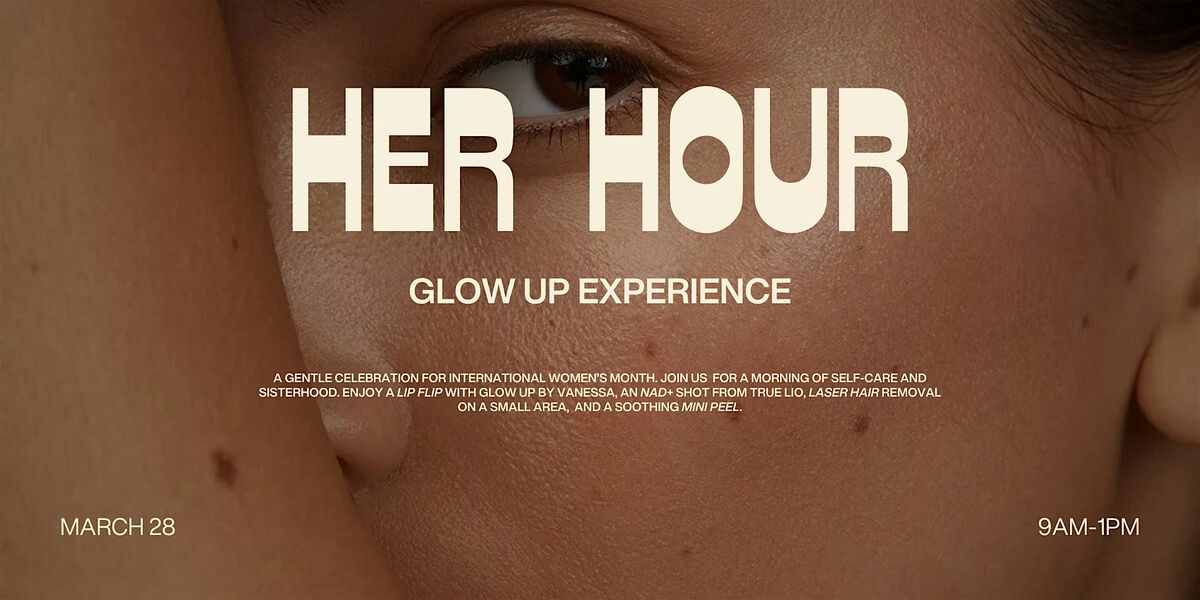 Her Hour is an intimate International Women’s Month gathering by Glow Up designed to refresh, restore, and celebrate women. Enjoy a relaxed, supportive atmosphere with expert-led mini-treatments, wellness education, and connection. Each ticket includes a curated lineup of quick, professional services to leave you feeling renewed and confident.