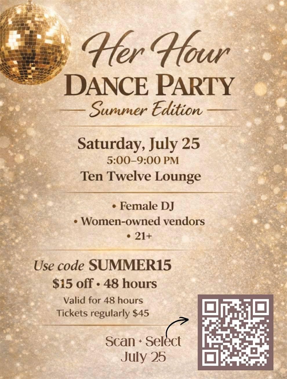 Her Hour is a bold, early evening dance experience for women who want to feel alive, connected, and free… without the pressure, chaos, or late nights of traditional nightlife.