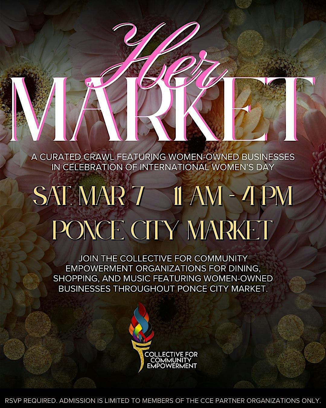 Join the partner organizations of The Collective for Community Empowerment (CCE) for our 2026 International Women's Day Celebration: Her Market, a curated crawl featuring women-owned businesses at Ponce City Market, on Saturday, March 7 from 11:00 AM - 4:00 PM.
