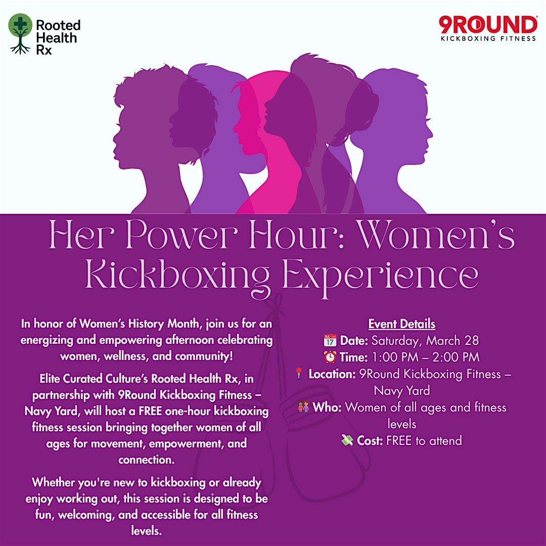 In honor of Women’s History Month, Elite Curated Culture's Rooted Health Rx initiative, in partnership with 9Round Kickboxing Fitness – Navy Yard, invites women of all ages to a FREE one-hour kickboxing fitness session designed to bring women together through movement, strength, and connection.