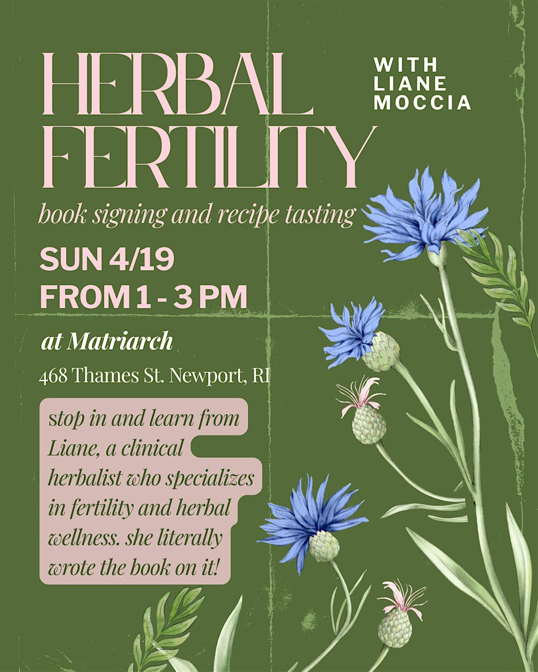 Come mingle with clinical herbalist and author of the Herbal Fertility Handbook, Liana Moccia, ask questions and taste recipes from the book at Matriarch.