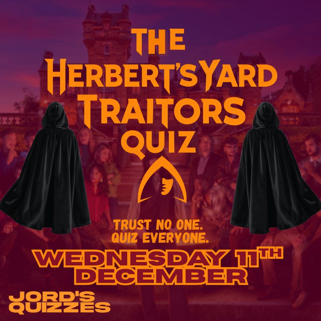 A Traitors quiz night with general knowledge questions anyone can play. Dramatic atmosphere, great food, drinks and prizes.