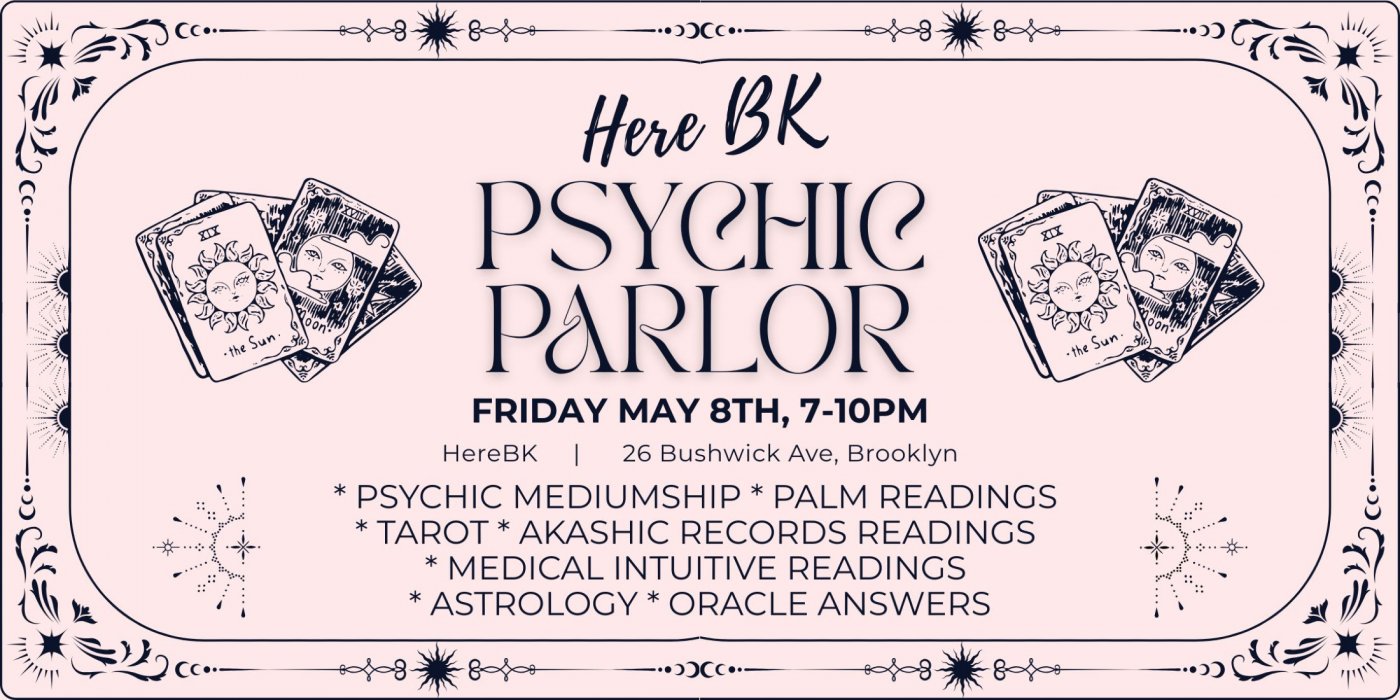 Friday Night Psychic Parlor at Here Bk! Enjoy cocktails, psychic mediumship, palm readings, astrology readings, and more!