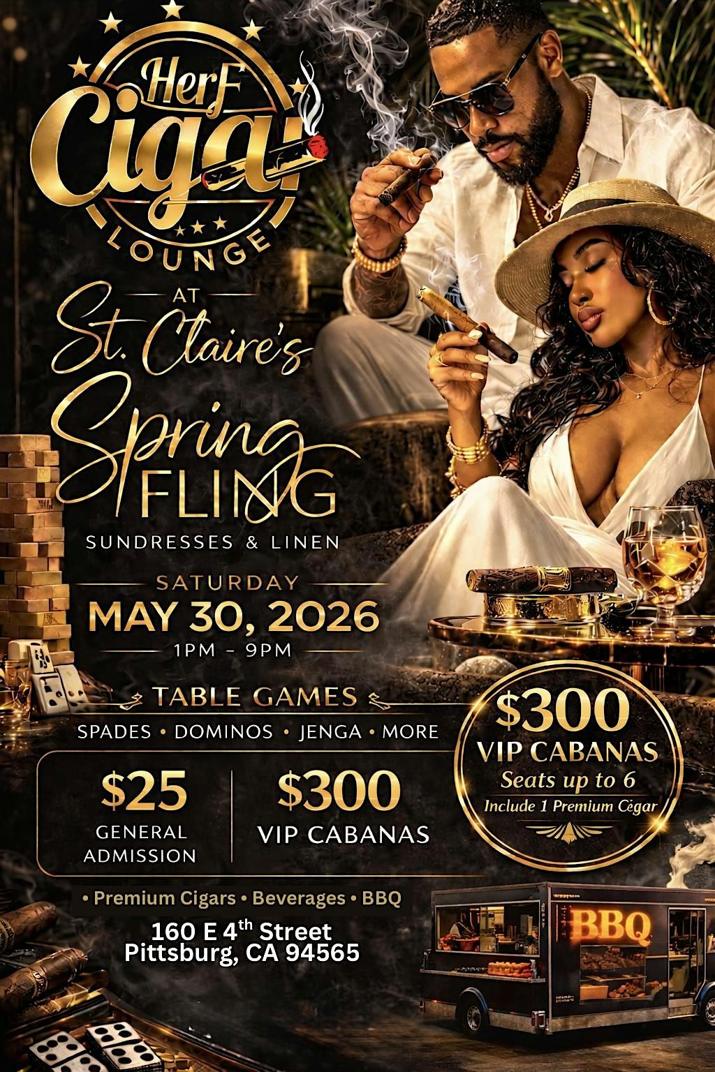 Spring Fling – Sundresses & Linen! Premium Cigars, BBQ, Table Games, Music, Cabanas, More.