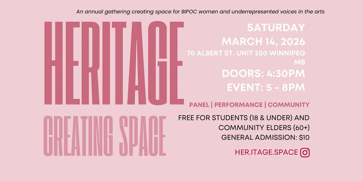The evening will feature panel discussions with established and emerging Winnipeg-based creatives, centering conversations around identity, heritage, and navigating the arts as BIPOC women. Live performances by an all-women band featuring panelists and local creatives will follow, alongside woman-owned vendors offering items, refreshments, and artwork on display.