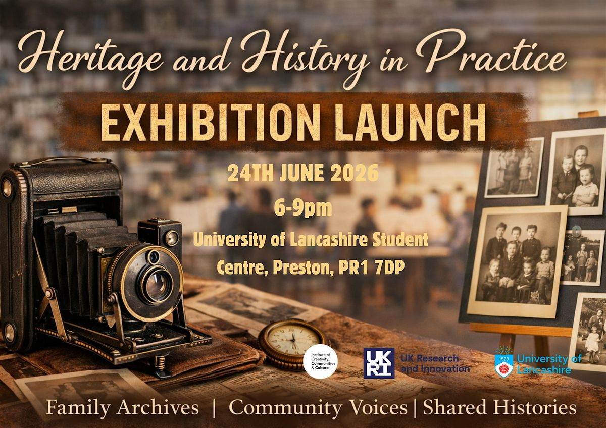 Join us for the Heritage and History in Practice Exhibition Launch, an engaging showcase of family history, photographs and personal archives developed through a collaborative research project at the University of Lancashire.