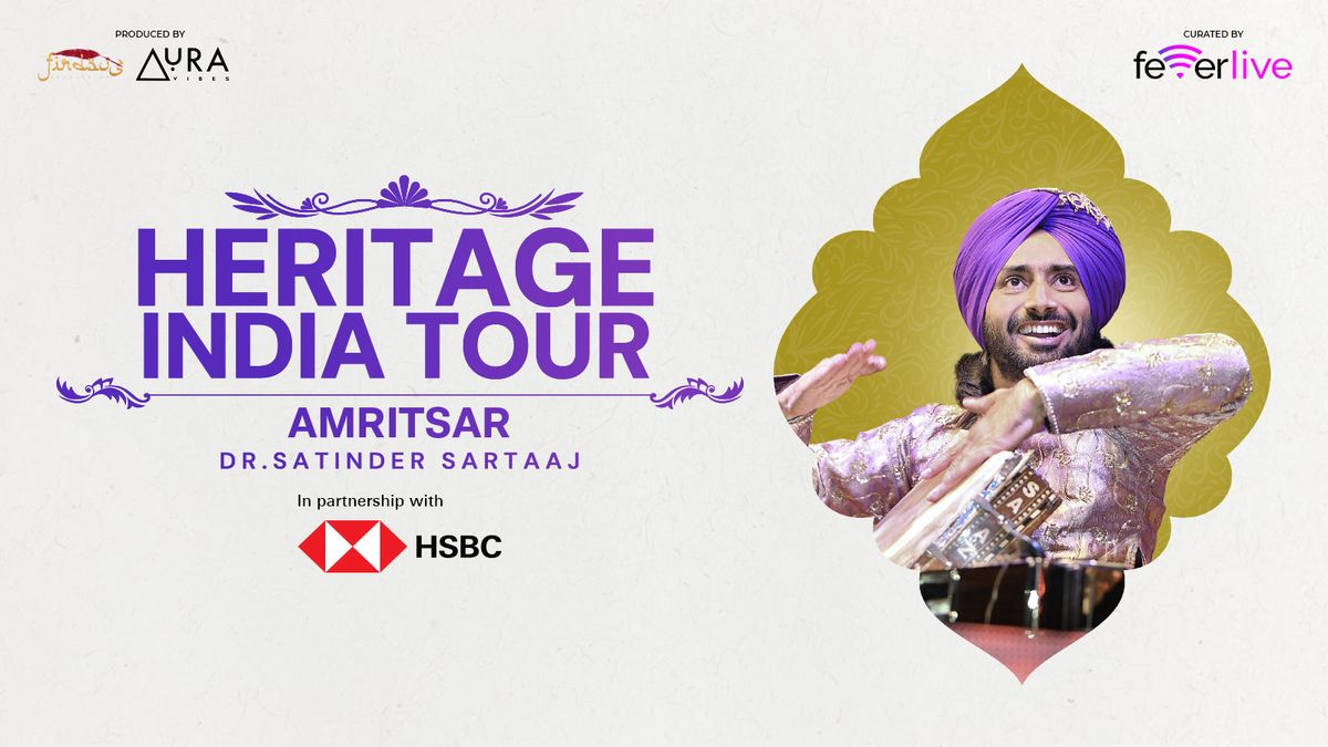 Dr. Satinder Sartaaj Heritage India Tour 2025–26Get ready for a once-in-a-lifetime musical journey with Dr. Satinder Sartaaj. From powerful high-energy Bhangra beats that make the audience dance non-stop, to heartfelt lyrics that touch your soul and bring tears to your eyes, this concert is a perfect blend of joy, emotion, and magic that will stay with you forever.