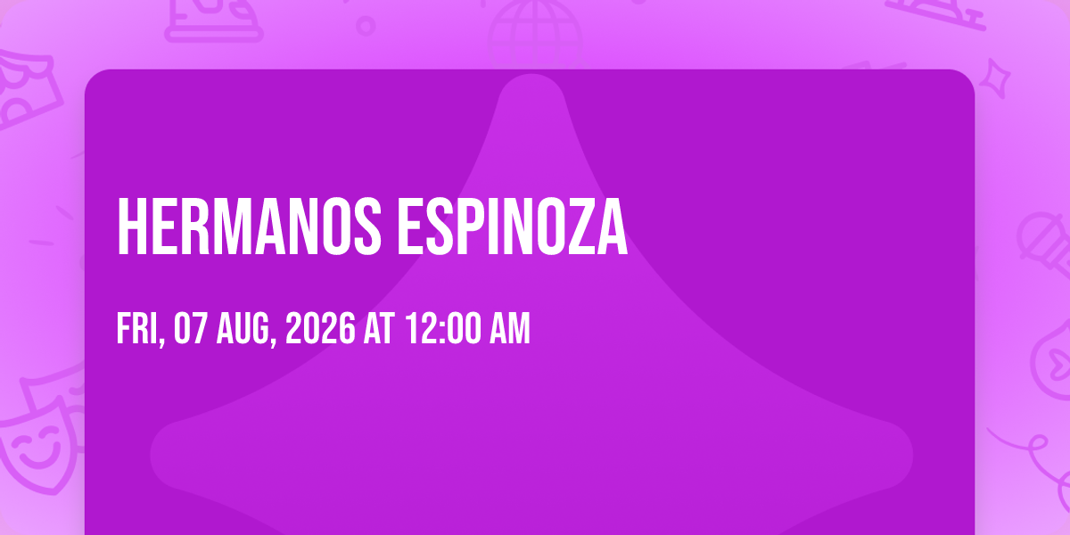 📍 Location: 40.7576, -73.9858✨ Discover the extraordinary at Hermanos Espinoza, where magic meets reality in ways you've never imagined! 🏛️ Set in Palladium Times Square nestled in bustling New York, NY, this event promises to be a landmark occasion. 📅 Taking place on August 7th, 2026 at 12:00 AM, it's going to create an atmosphere where every moment becomes a cherished memory. 🌟 Immerse yourself in an experience crafted with attention to every detail, designed to surprise and delight at every turn. They have worked tirelessly to ensure this event exceeds all expectations, bringing together elements of entertainment, innovation, and pure joy. 🎊 Don't miss your chance to be part of this remarkable journey!
