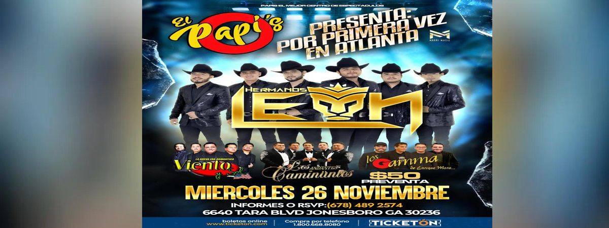 Discover why 'HERMANOS LEON, LA NUEVA ERA ROMANTICA VIENTO Y SOL & MAS' is generating buzz in El Papis, Jonesboro, GA, United States. This exciting event brings together industry leaders and enthusiasts. Be part of this transformative experience that's shaping the future of exciting events. Reserve your place now for an unparalleled exciting experience. #HERMANOSLEON,LANUEVAERAROMANTICAVIENTOYSOL&MAS #event #exciting #JonesboroEvents #GAEvents