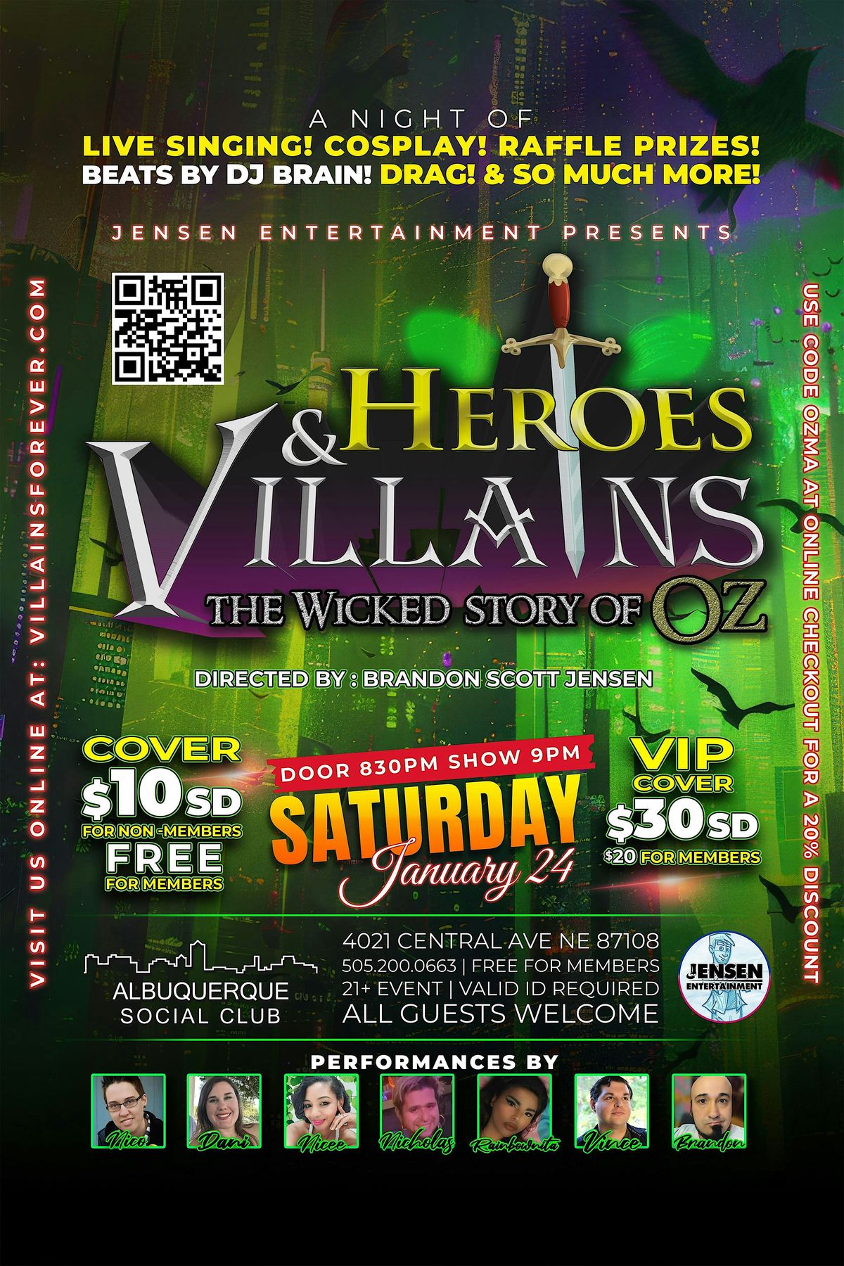 Good News to ALL Ozians! Heroes and Villains is bringing all of your favourite Wickedly Ozian characters to the stage to sing and dance for you! Cosplay, Drag and more!