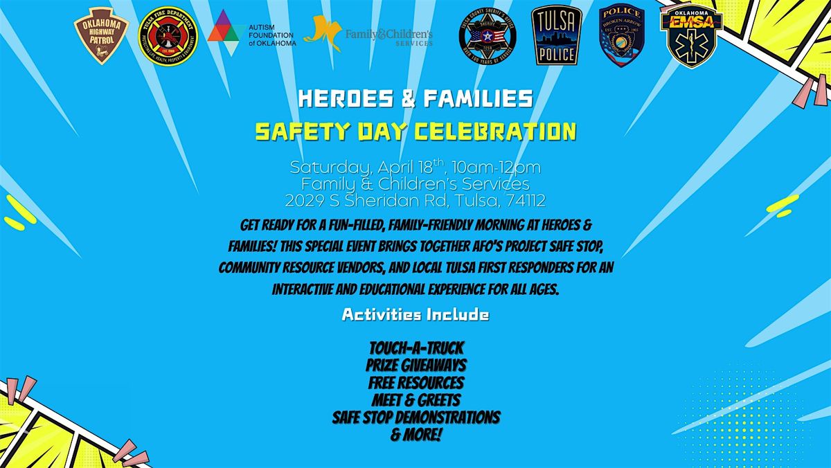 Get ready for a fun-filled, family-friendly morning at Heroes & Families! This special event brings together AFO's Project Safe Stop, community resource vendors, and local Tulsa first responders for an interactive and educational experience for all ages.
