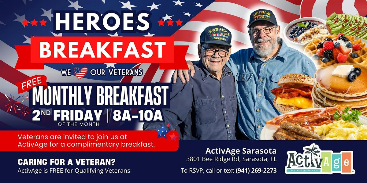 πΊπΈ Calling All Veterans! πΊπΈ You're invited to our FREE monthly Heroes Breakfast at ActivAge Sarasota! π₯π³
